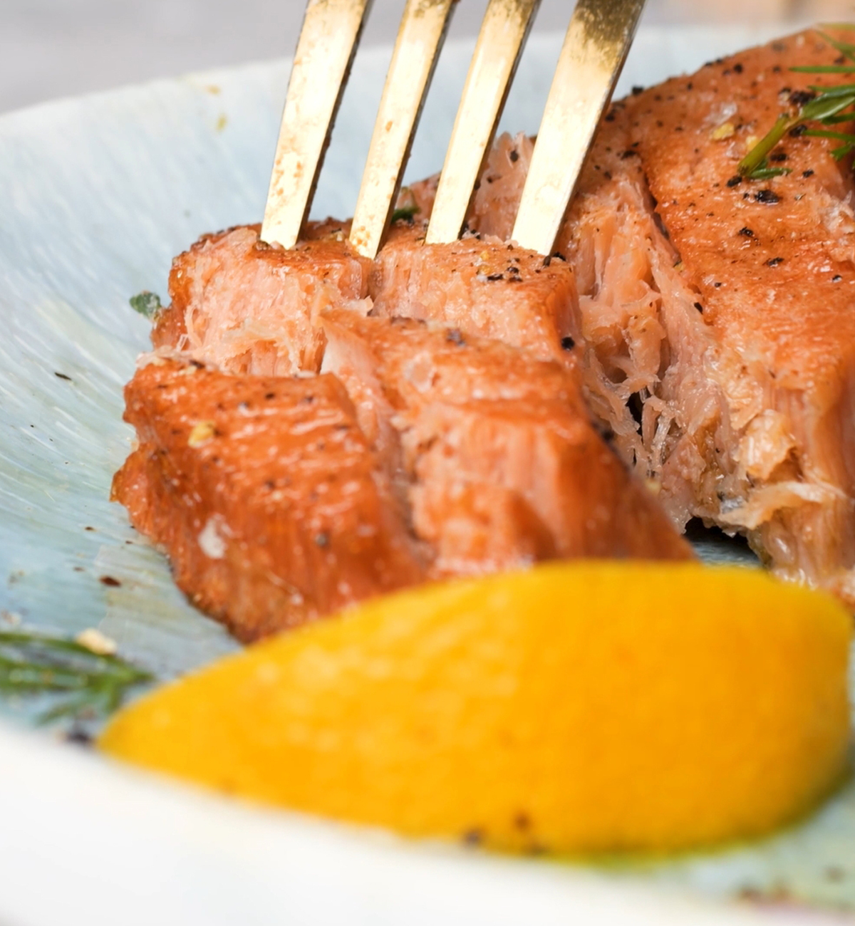 Their flagship product, a salmon filet, replicates the taste, texture, and cooking experience of wild fish. What sets New School Foods apart is their cold-based production technique, which ensures that their salmon filet starts raw and cooks like traditional fish.