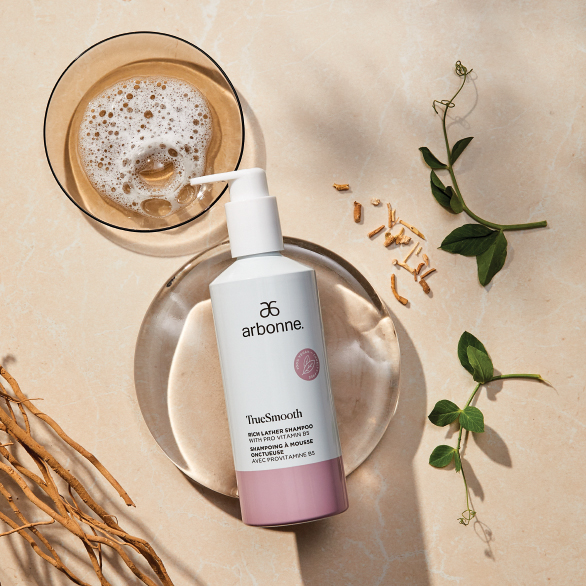 More specifically, Arbonne’s three new TrueSmooth products are the Apple Vinegar Hair Rinse, Rich Lather Shampoo with Provitamin B5, and the Hydrating Conditioner with Provitamin B5.
