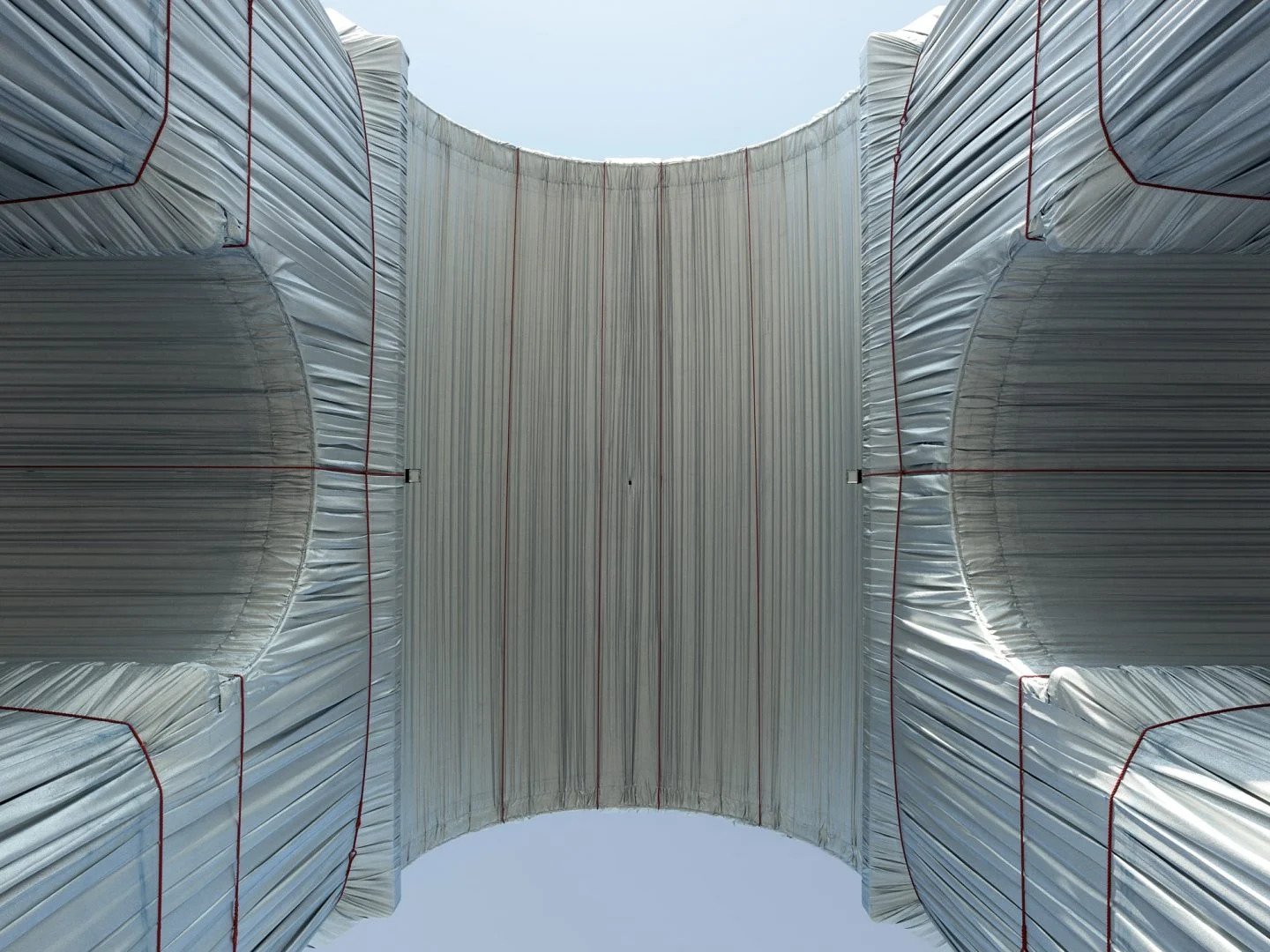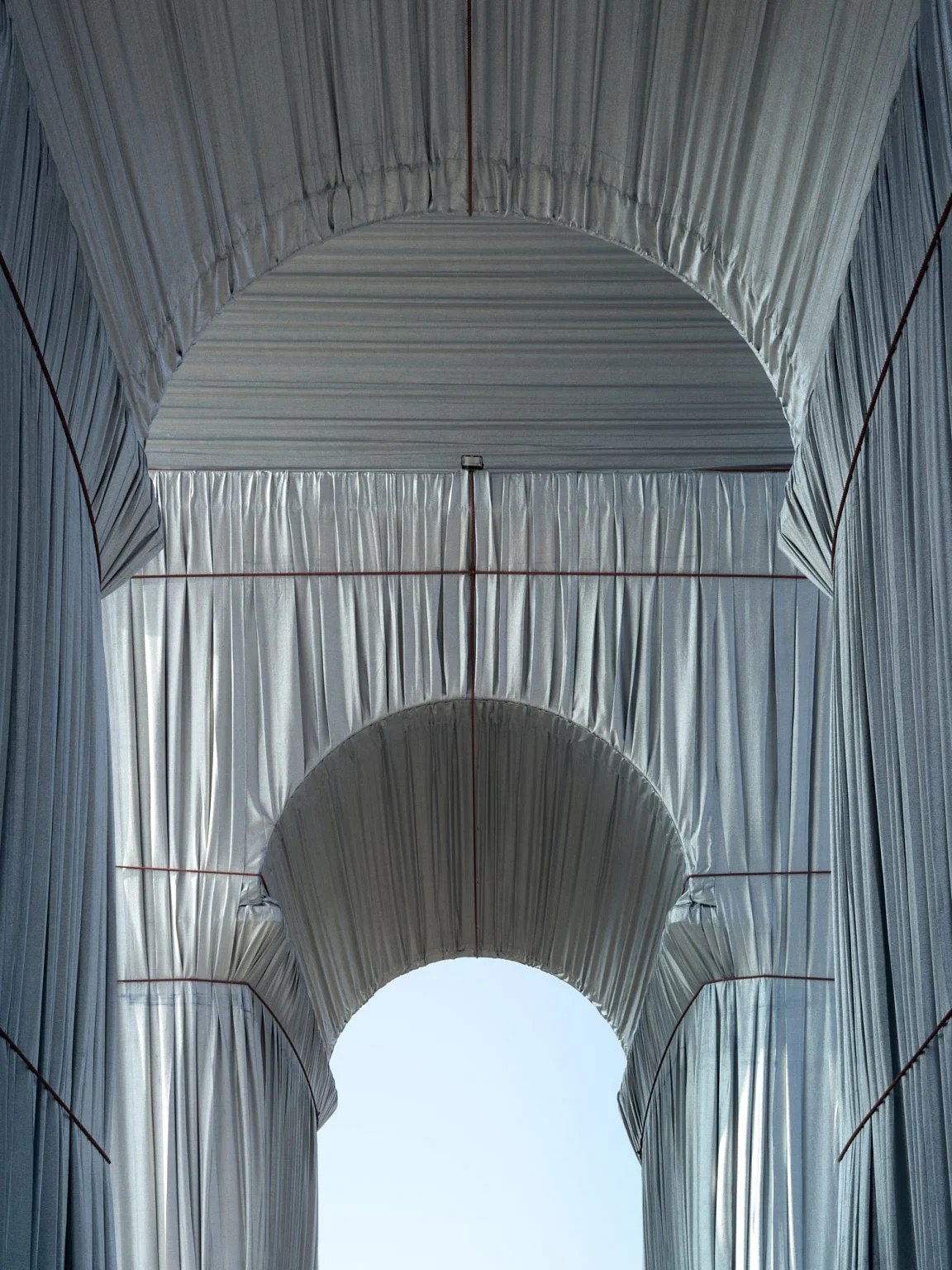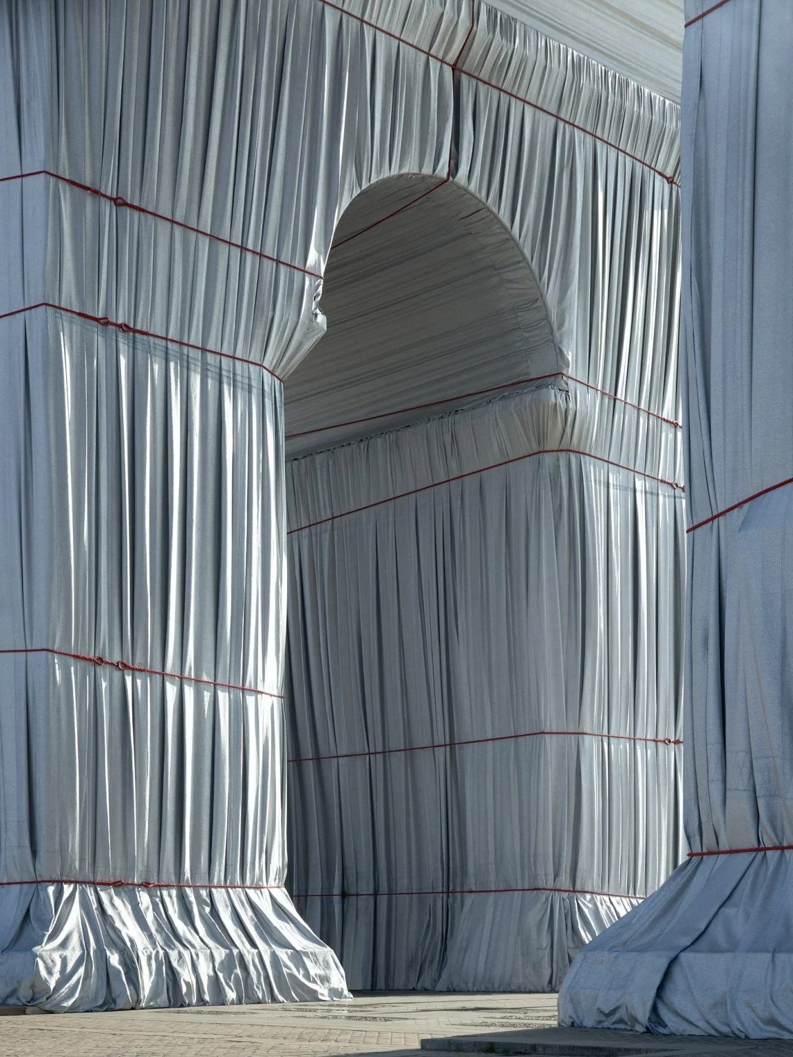 For 16 days, the Arc de Triomphe in Paris, France was wrapped in 25,000 square meters of recyclable polypropylene fabric with 3,000 meters of red rope tying it down.