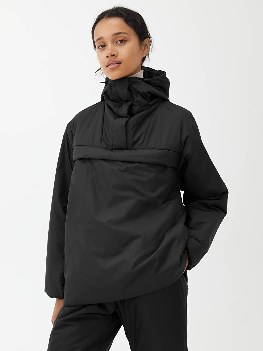 Over on its 24-piece sustainable sportswear lineup, the modern range of athleisure apparel includes structural fleece jackets, running hoodies, bicycle shorts, and cross back sports bras, all made from 100% recycled and reclaimed materials. The windbreaker jacket is specifically made entirely from recycled polyester.