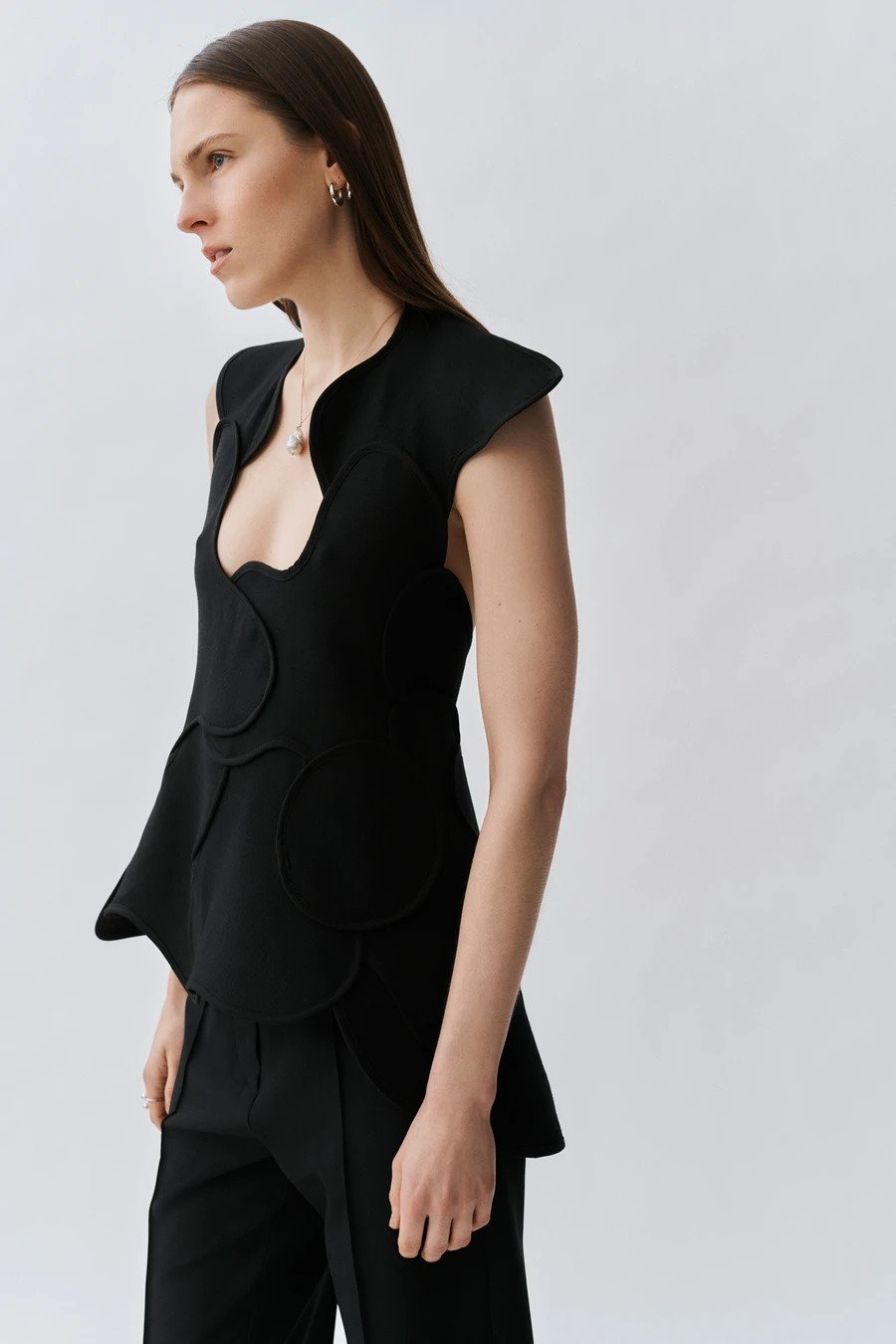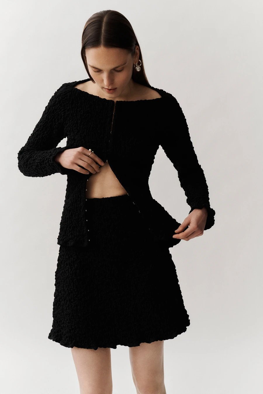 To bring Beaufille’s recycled collection to life, the designers behind the Canada-based label, sisters Chloé and Parris Gordon, experimented with everything from leftover yardage and fabric scraps to trims and metal. The result? Innovative and environmentally-friendly pieces.