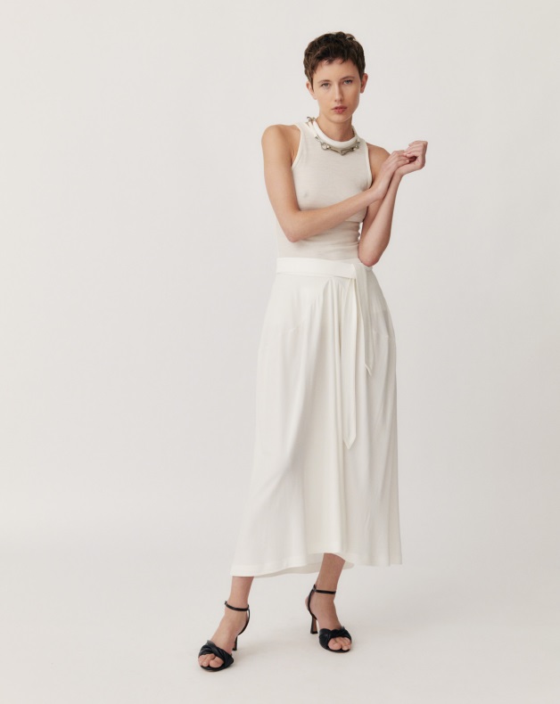 Within the Pre-Spring 2024 collection itself, you’ll find an array of materials such as light silks, organzas, and poplins that not only exude luxury but are also gentle on the environment.