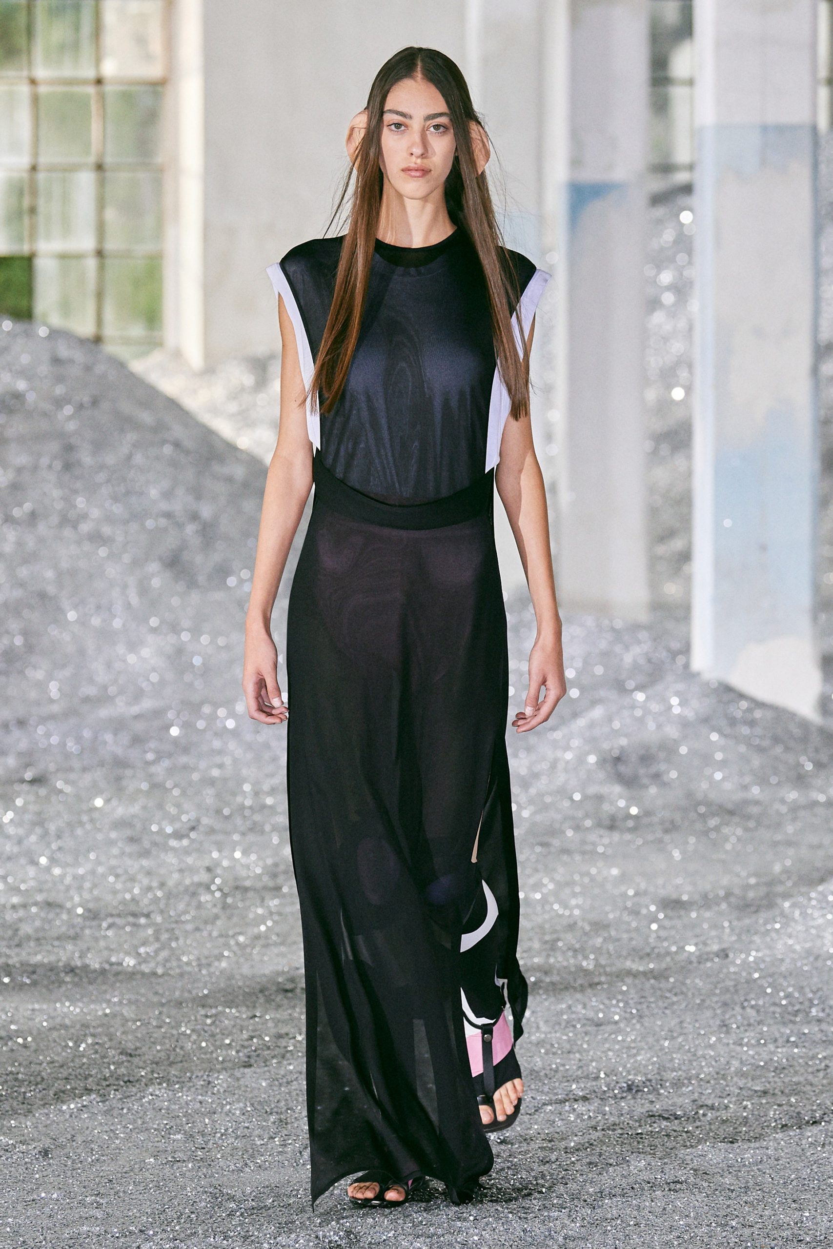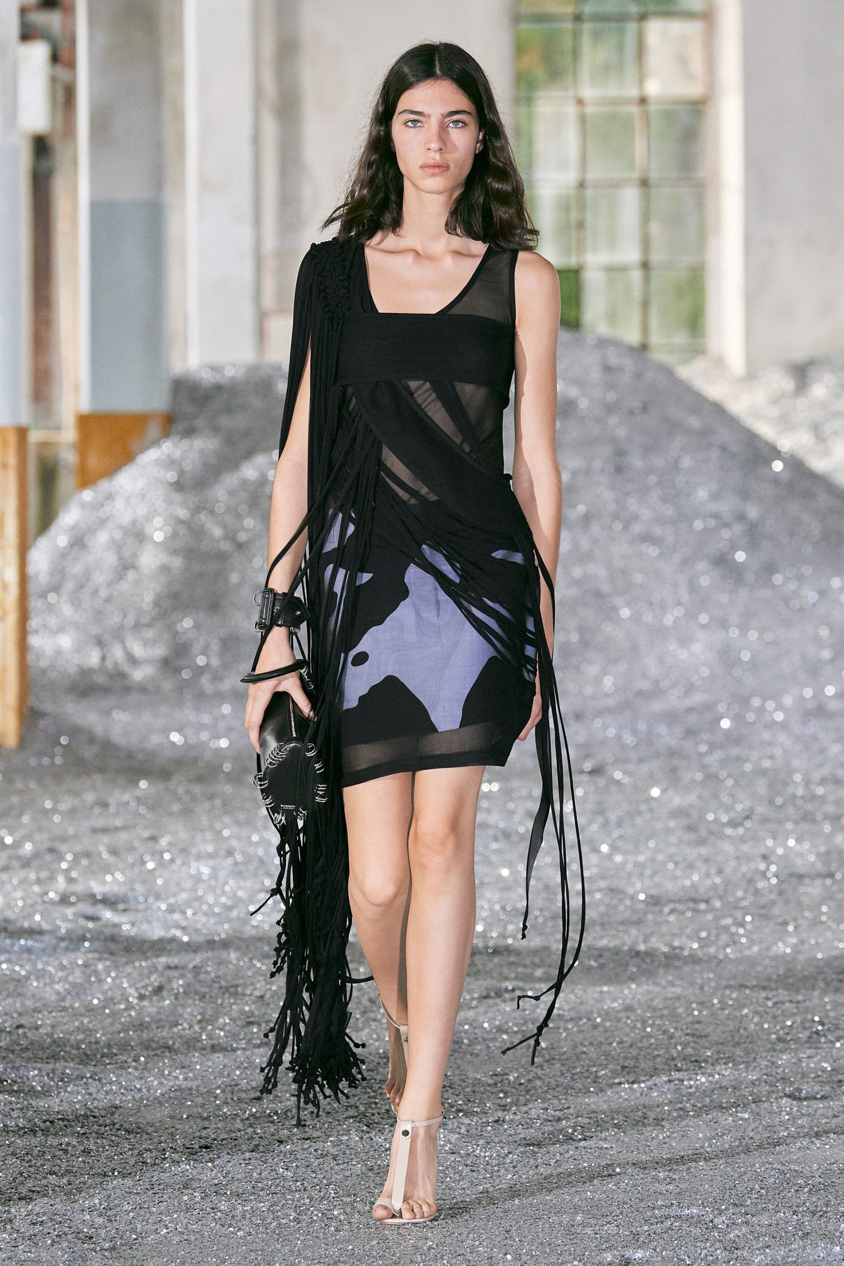 Further, in the presentation, areas of the runway were developed using innovative techniques that highlighted a range of sensory experiences. One room had walls adorned with recycled Burberry trench coats while another used sparkles to create a runway.