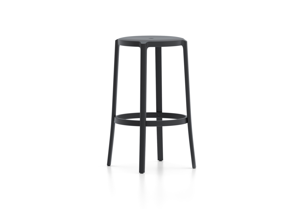 With the collection available in six colours, there is also a variety of seat materials available. Along with rPET seats, there are upholstered seats and plywood seats in oak or ash. The stools are available as bar height and counter height.