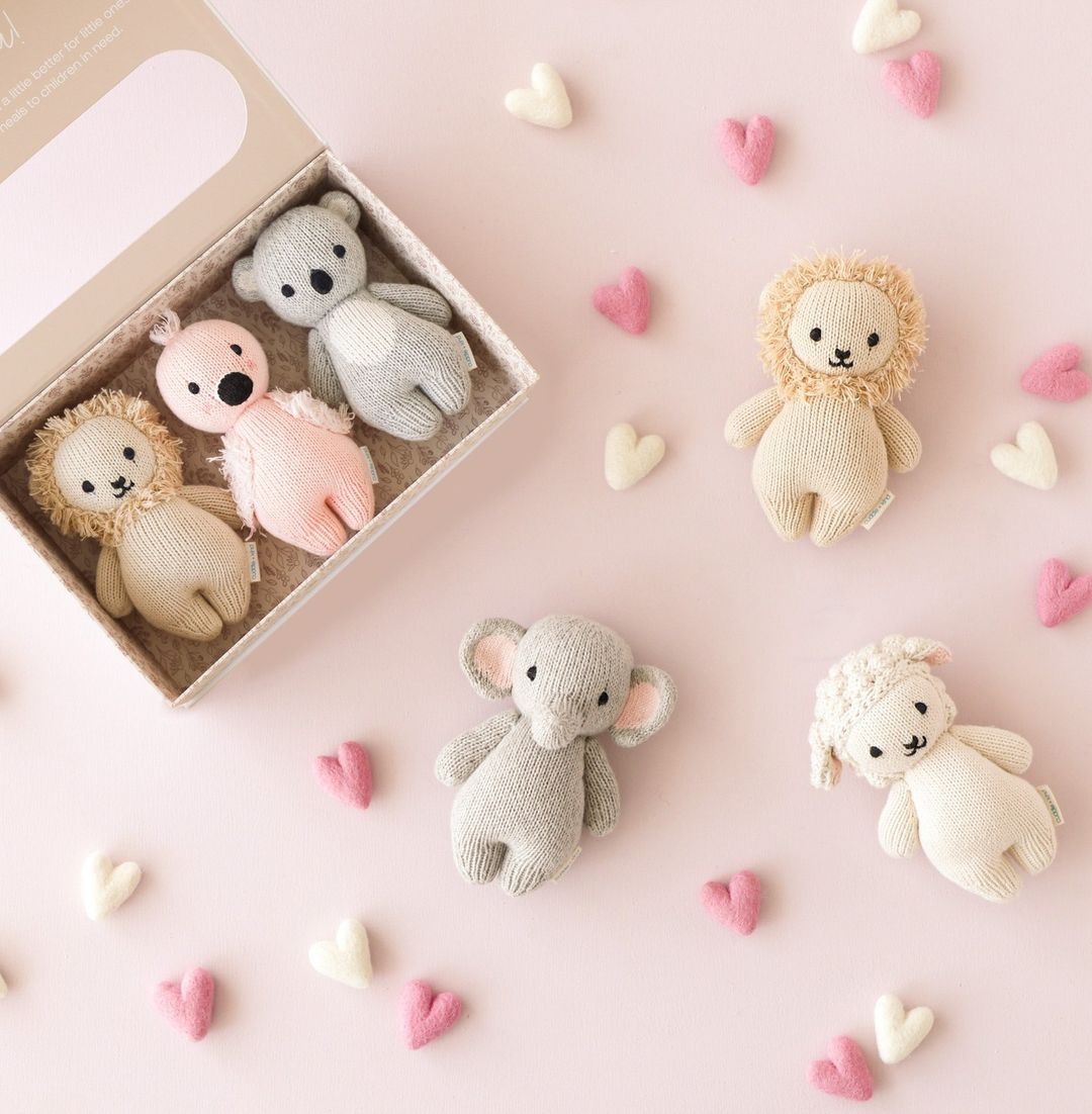 For the Woodgate’s, quality is as important as the cause they are proudly backing. The dolls are hand-knit with high-quality cotton by their artisan team members and each of the nine dolls sold on their website dons a name, birthdate, and ‘personality’ along with an inspiring quote. “Our dream for cuddle+kind is to make a tangible, positive impact on childhood hunger,” Jen and Derek say on their website.
