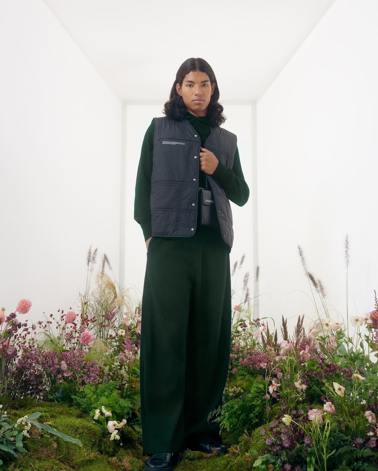 Like all of PANGAIA’s pieces, the Uniform Series 02 collection, comprised of sweaters, vests, jackets and more, is made from sustainable materials such as organic cotton and recycled nylon.