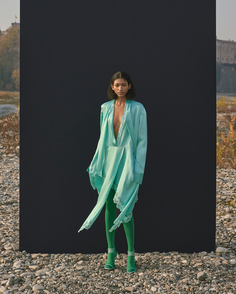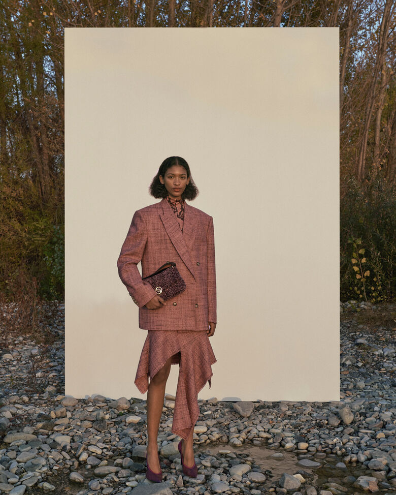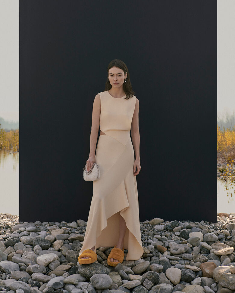 “This season, Stella was especially inspired by a love for trees and Mother Earth – embodied in texture, an earthy colour palette and sculptural silhouettes, as well as in forest-friendly viscose that reinforces our zero-deforestation commitment.”