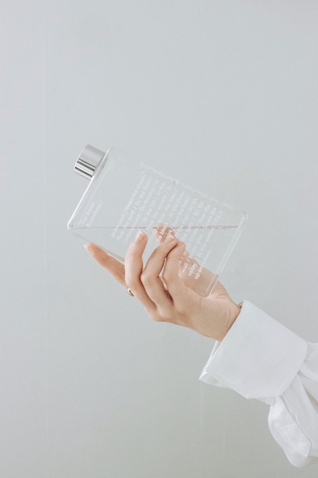 “I worked on what I thought would be the best proportion and size to perform the function of carrying half a litre, as well as displaying a certain amount of information. So it needed to be somehow flat and yet easy to hold in one hand,” Pizzolorusso told Dezeen.
