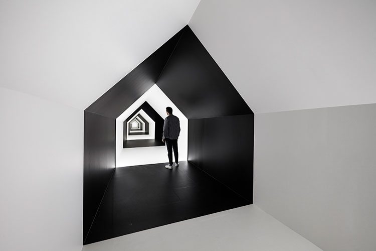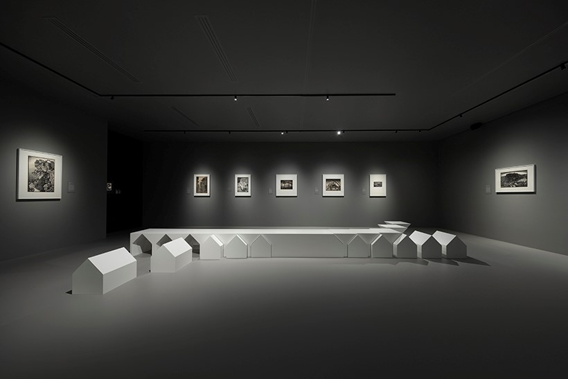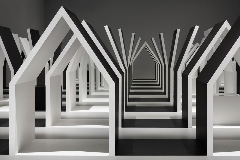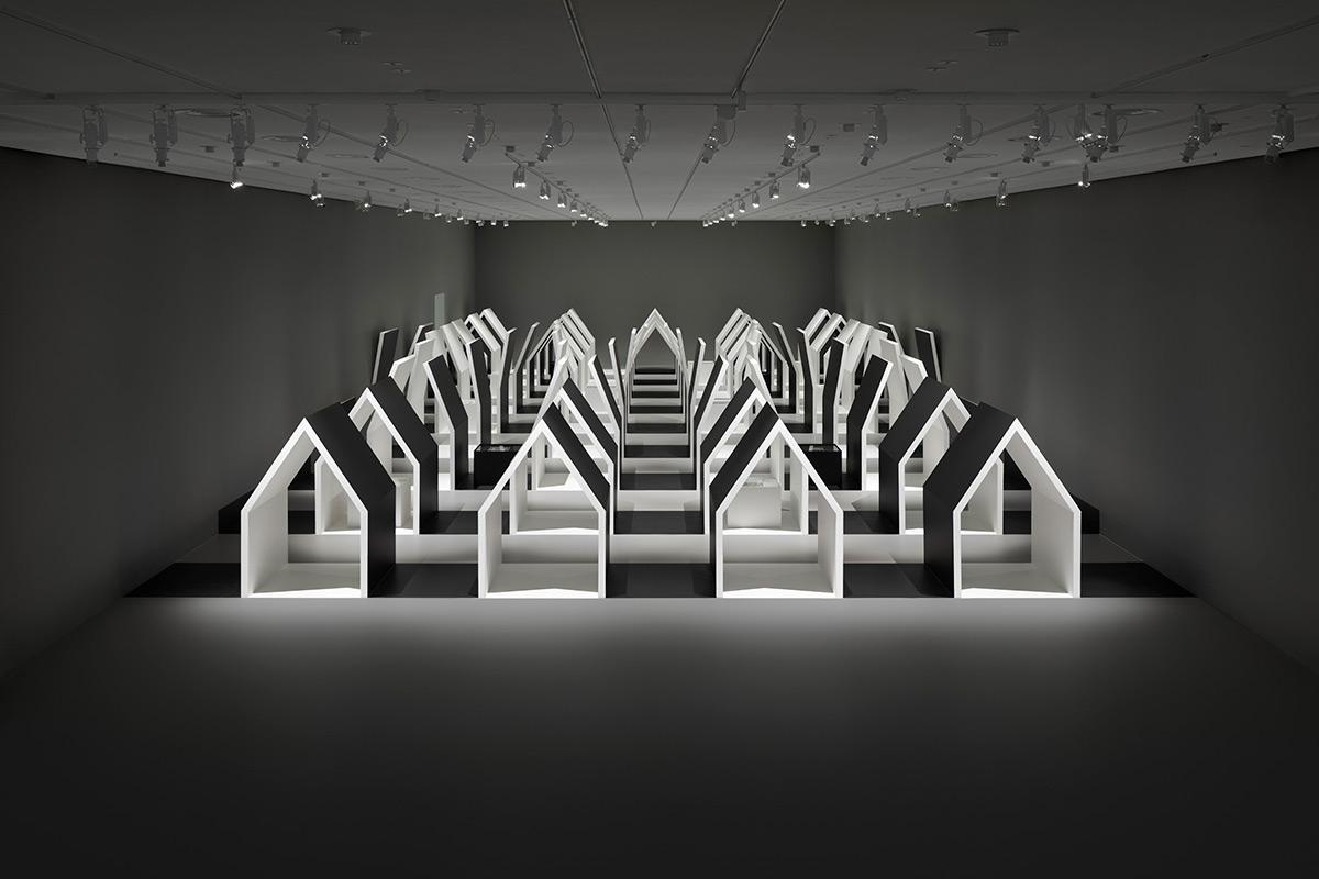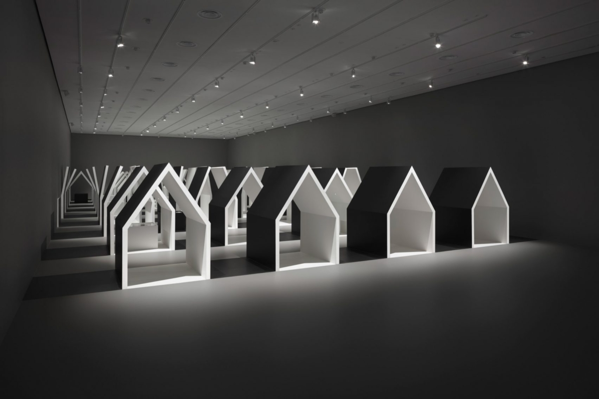 Among the biggest gallery of the exhibition, visitors are then lead to a 60-metre-long and six-metre-high gallery filled with rows of black and white houses.