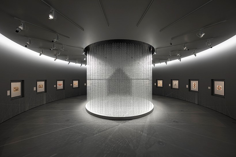 In the next gallery, a circular room housing 17 of Escher’s artwork is complemented by a chandelier made up of 55,000 small black and white houses placed in the centre.