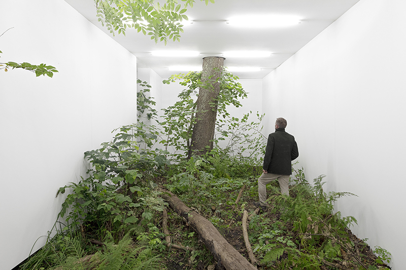 “As you warily tread the muddy ground, your eyes adjust to bright white fluorescent light,” said alexander levy, a gallery representing Knecht. “A trickle of water catches your ear. You arrive, surrounded on all sides by windowless white walls, in a truncated thatch of forest.”