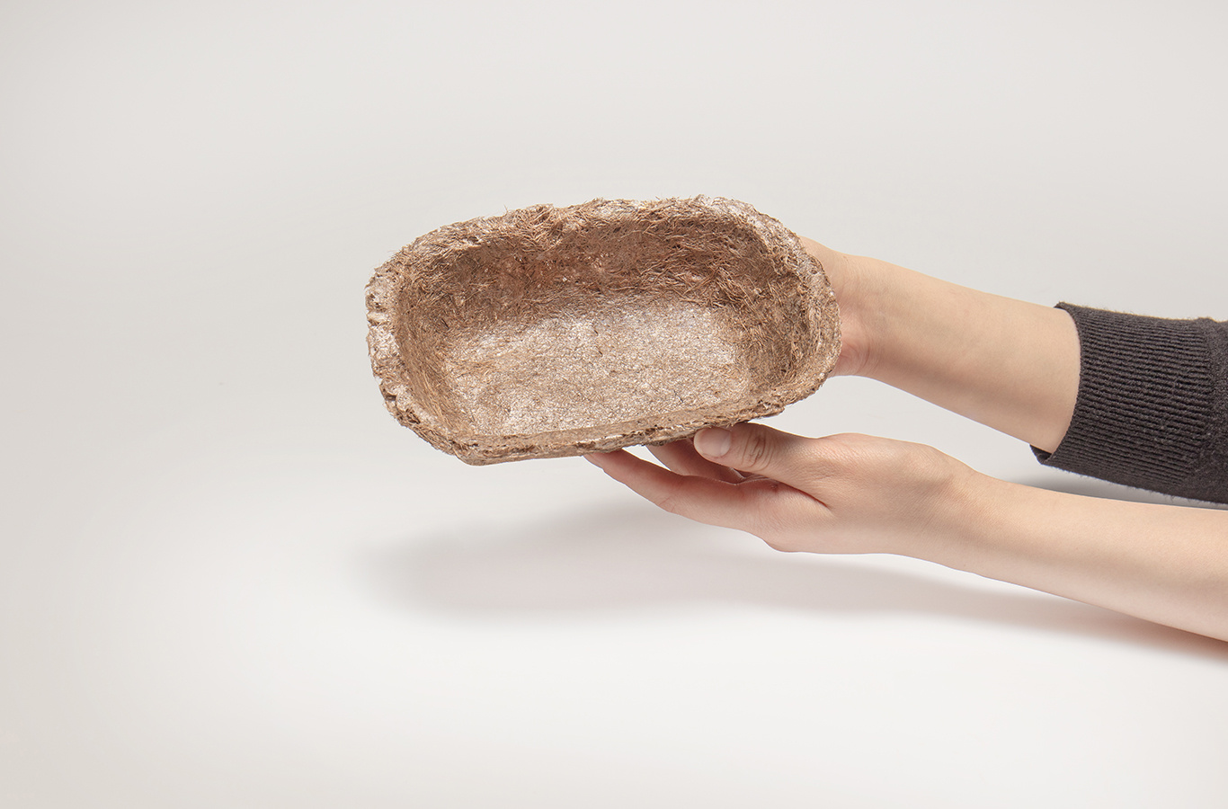 POC is created by bounding dried seagrass fibre together using cellulose-based extract before being pressed into a metal mould and baked to dry. The seagrass used for POC is in fact already dead and sourced from the beaches of the Mediterranean coast, ensuring that no industrial harvesting is required that may damage the ecosystem.