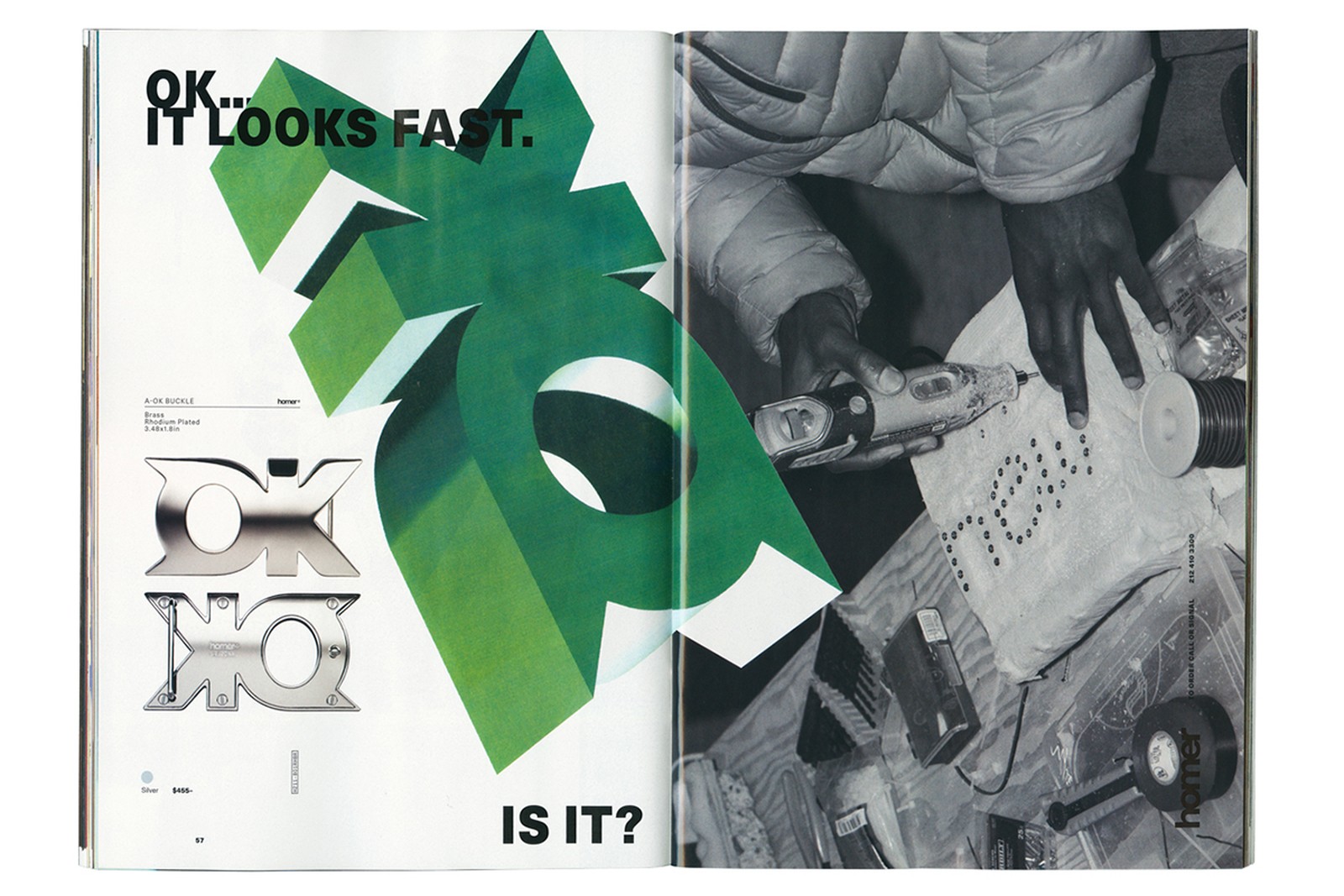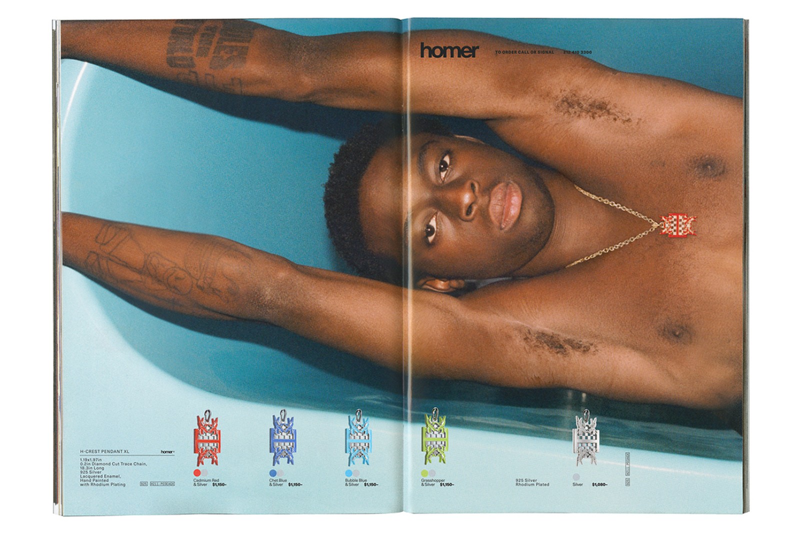 In conjunction with the launch of Homer, an 84-page catalogue chronicling each item in the brand’s first-ever collection was published. The catalogue cover and photography were designed by Ocean while the campaign imagery was shot by Ocean’s frequent collaborator, Tyrone Lebon.