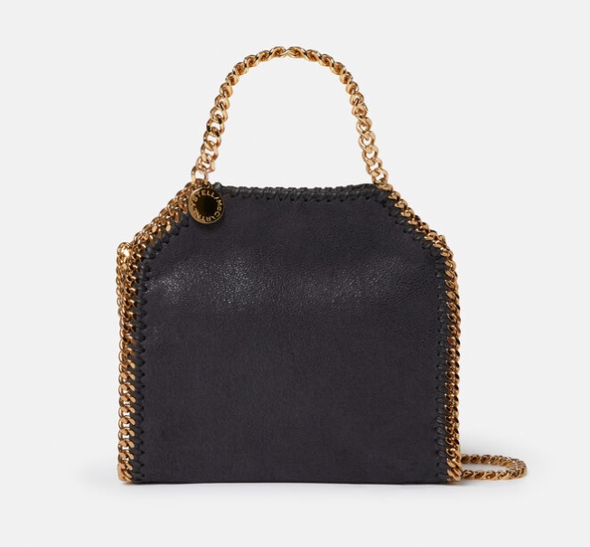 Complete your ensemble with iconic accessories like the practical yet chic Falabella Tiny Tote Bag made from recycled materials, or make a statement with the Crystal Mesh Mini Tote Bag in vibrant red.