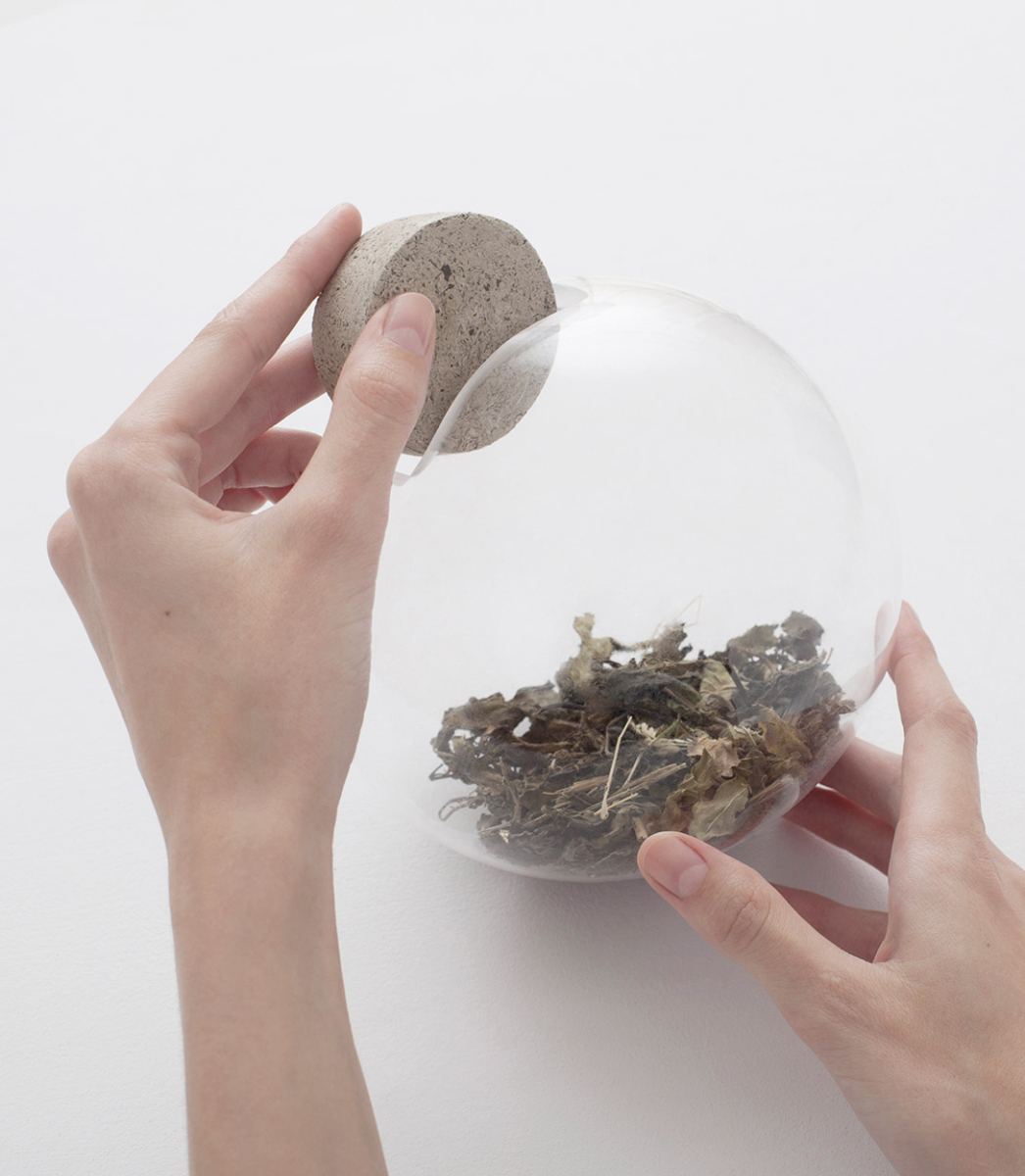 Created by Polish sisters Agniezska and Dominika Pulapa of Pulapa Studio, O2 is a collection of spherical glass containers paired with plugs made from herbal mass.