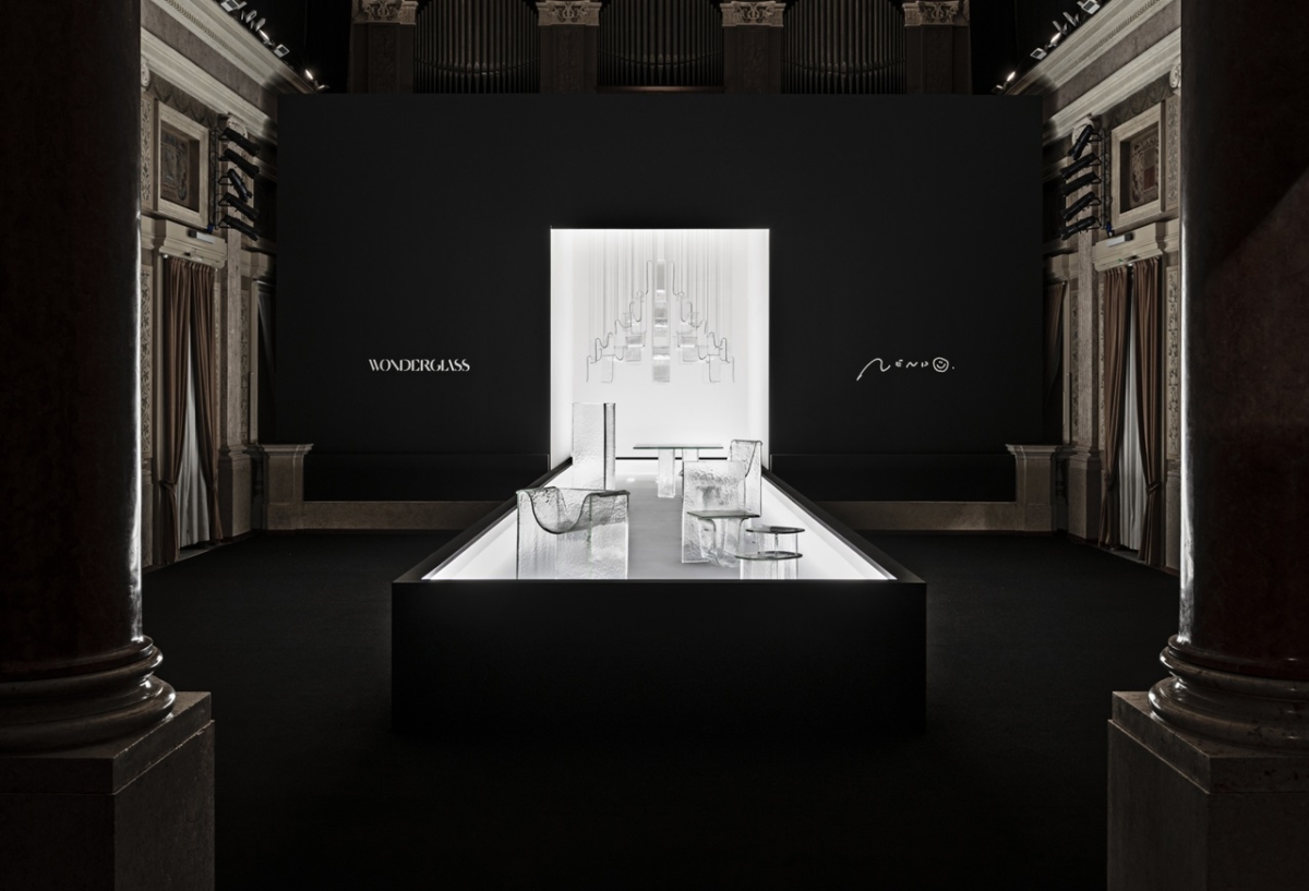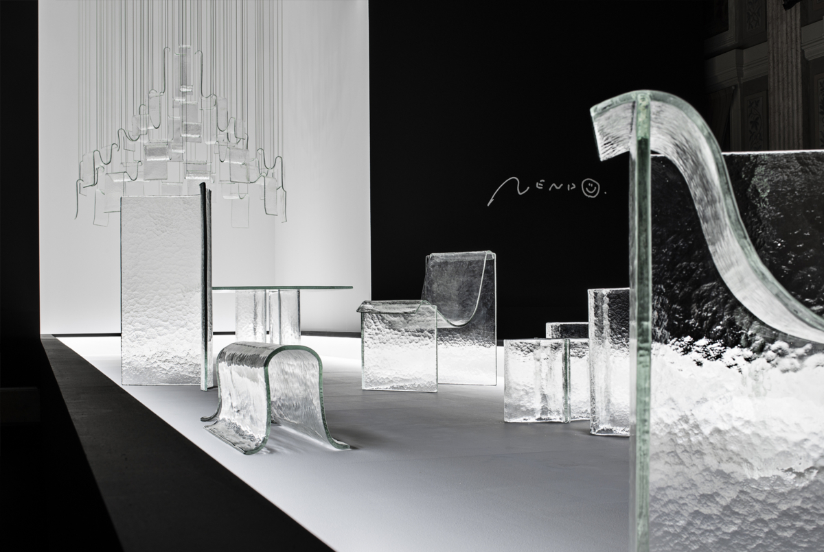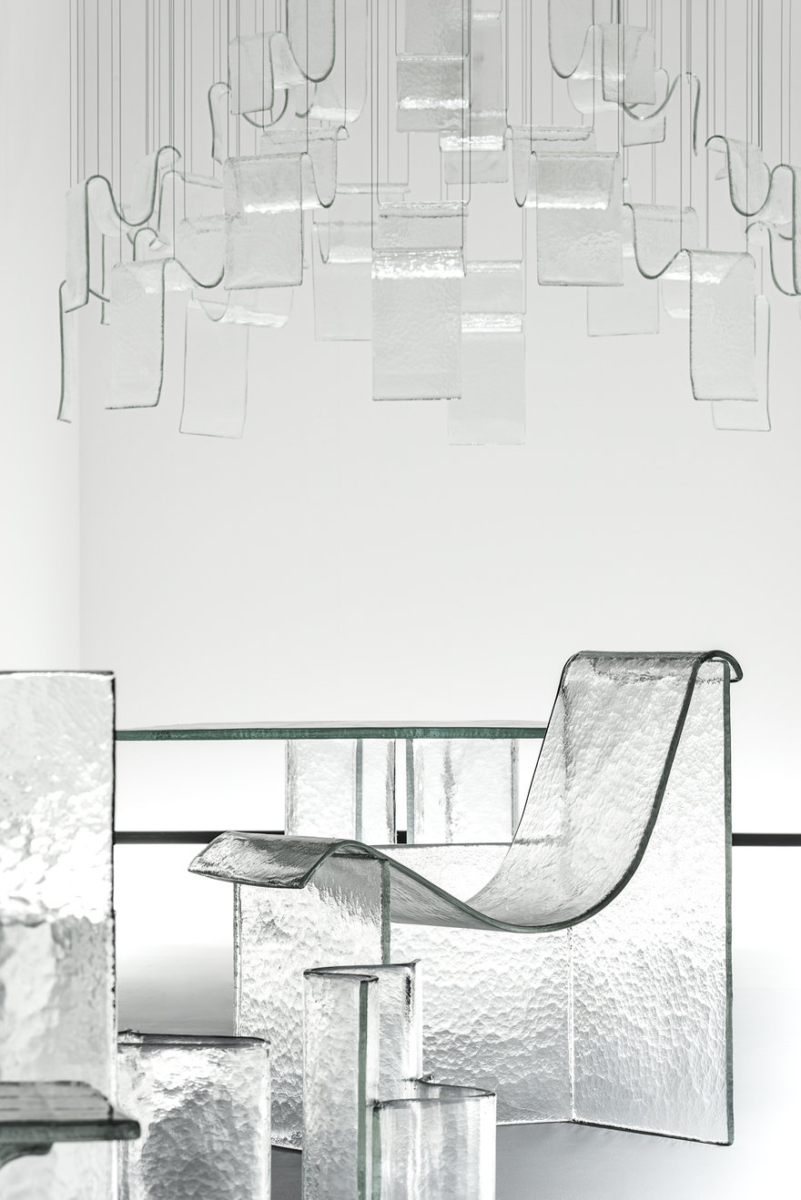 Japanese design studio nendo in collaboration with WonderGlass has presented the Shape of Gravity exhibition showcasing a cast glass furniture and tabletop collection called Melt.