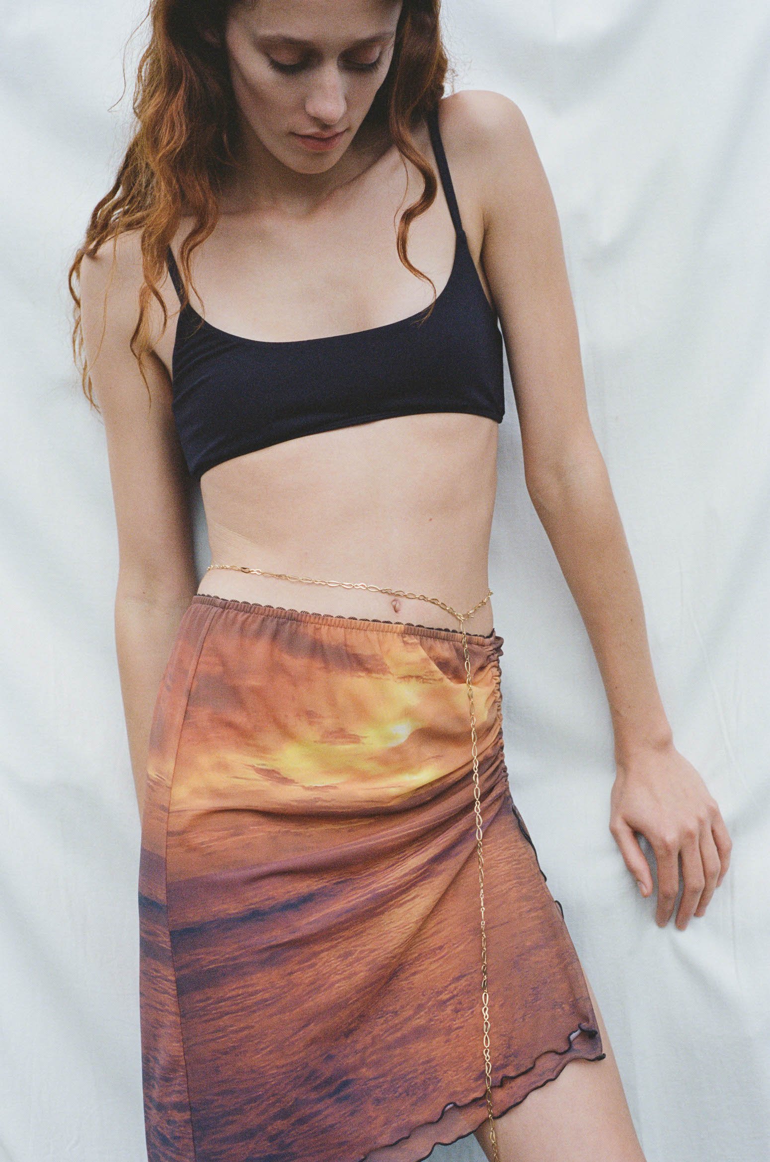 Each piece in Jasmin Sparrow’s collection is delicately crafted from sustainable materials by hand and comprises made-to-order bralettes and headwear to gold-plated silver necklaces and earrings.