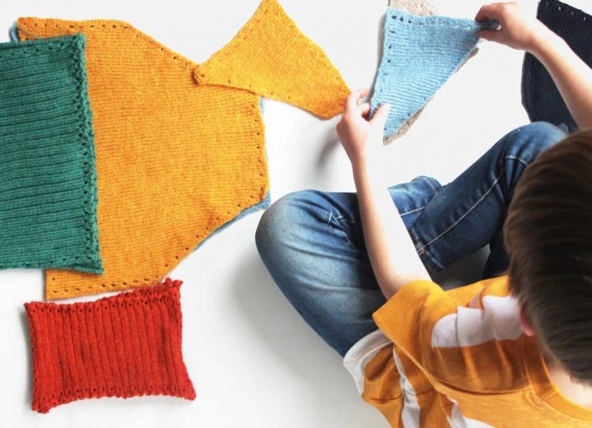 Created by knitwear designer Maija Nygren of Almaborealis, Puzzleware is a modular DIY knitwear kit inspired by early learning theories such as Loose parts play, Froebel and Montessori.