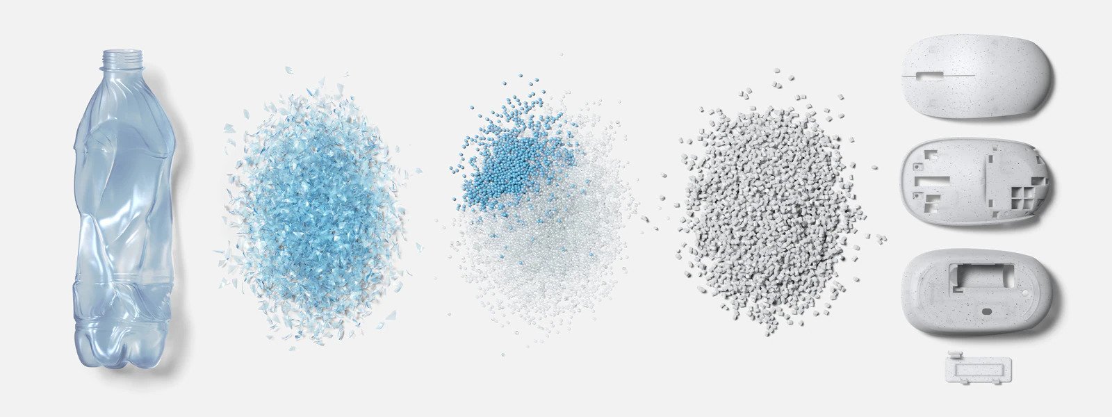 Sourced from the sea and waterways, plastic waste is processed into recyclable plastic resin pellets then used for the shell of the Ocean Plastic Mouse.