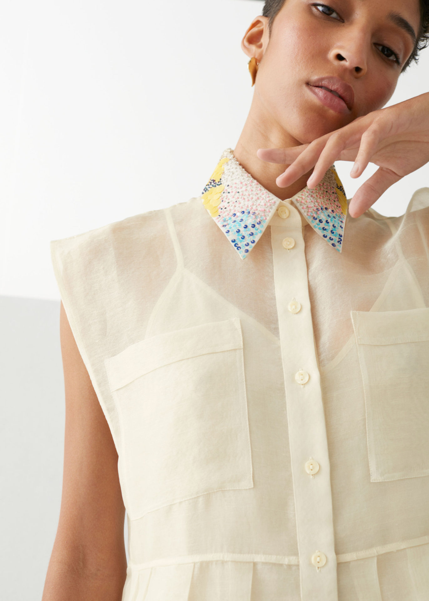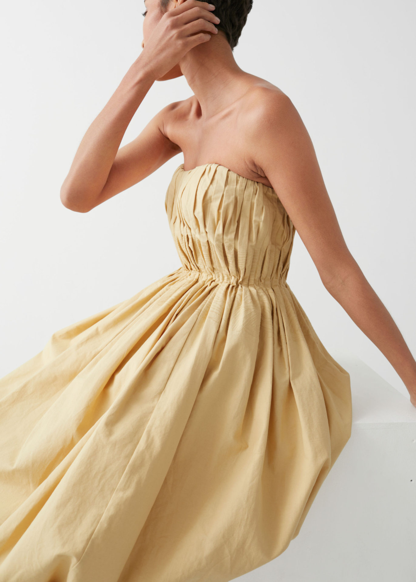 “Our collective mindset is to explore and question the design process along the way to make sure we always go for the most sustainable option possible. We see these garments being worn in nature, in the warm sun, and we wanted to create a capsule that honors the nature that inspired it,” shares & Other Stories designer Caity Knox.