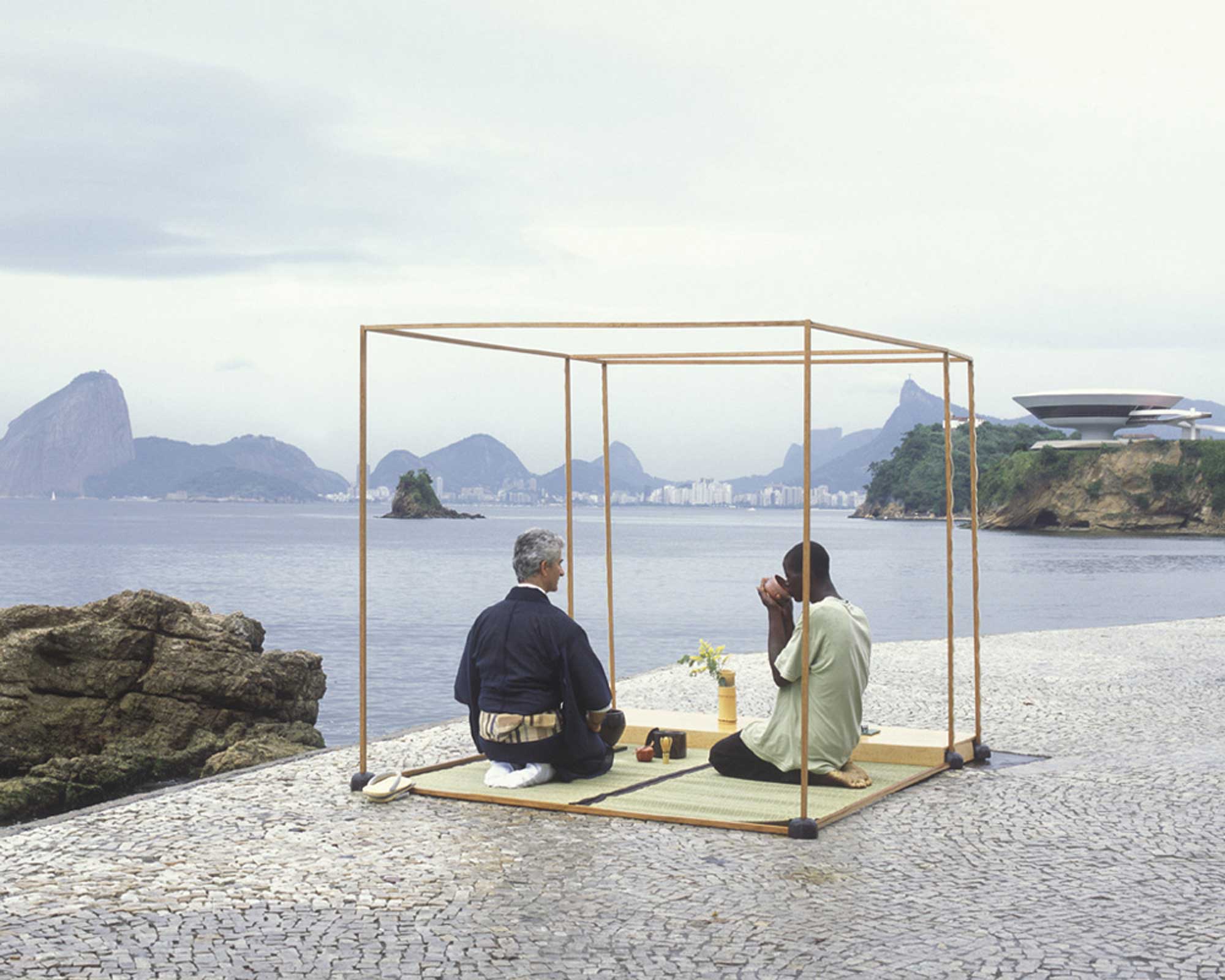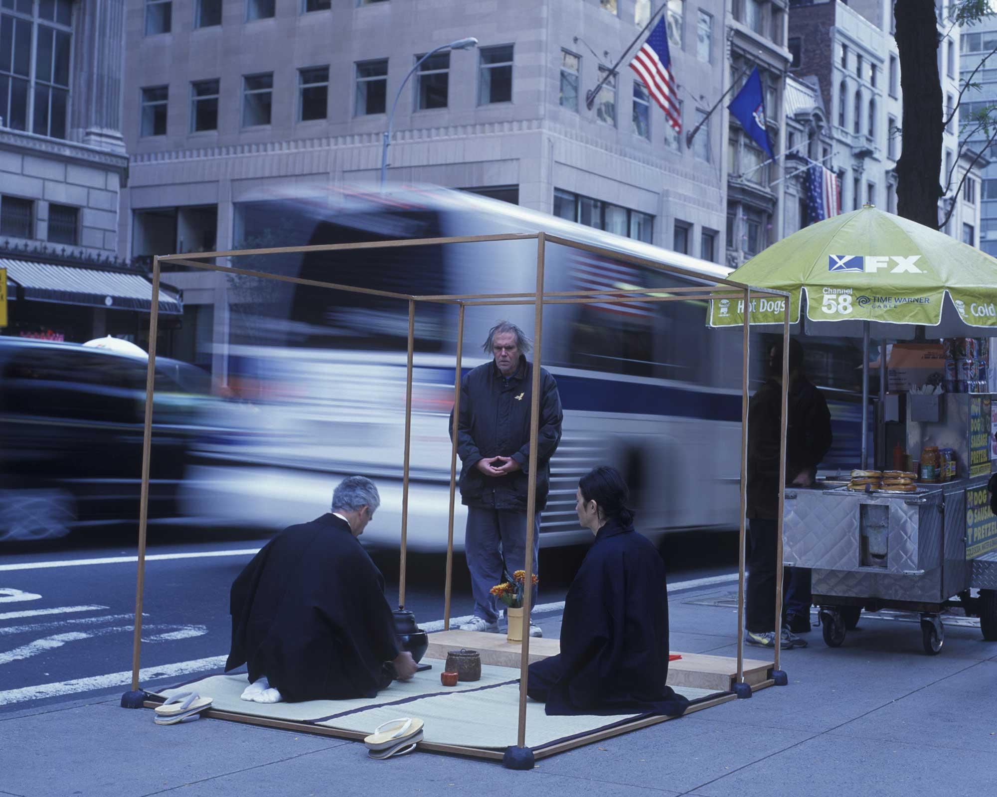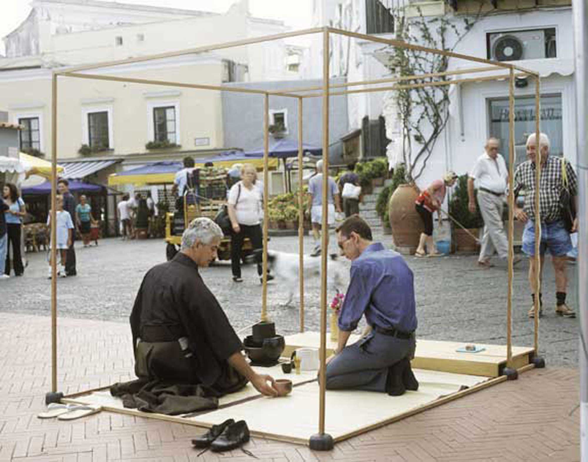 Using a portable Japanese tea room, a space for social interaction and conversation, in addition to a juxtaposition of the surrounding reality is created. The guests were invited to see their environment from a new perspective, meanwhile reflecting on different cultures and universal human values.