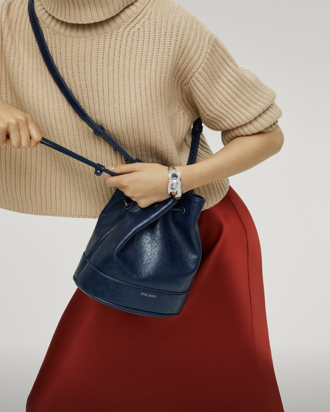 Pixie Mood’s Fall/Winter 2021 collection is called Eco-Mood and features a range of low-impact vegan leather pieces, many of which are made from recycled plastic water bottles (lining for all Pixie Mood bags has been made from recycled plastic bottles since 2020). While Pixie Mood has always led the way in terms of vegan leather accessories, this is their first foray into recycled vegan leather. The Eco Mood collection also introduces a new colourway, a burgundy red called Wine.