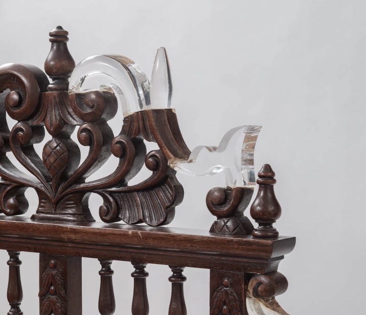 Tatiane Freitas is a Brazilian visual artist who creates half antique, half modern art. Made from worn furniture and plexiglass, the pieces are a ghost-like portion of the composition that is vitreous and fluid.