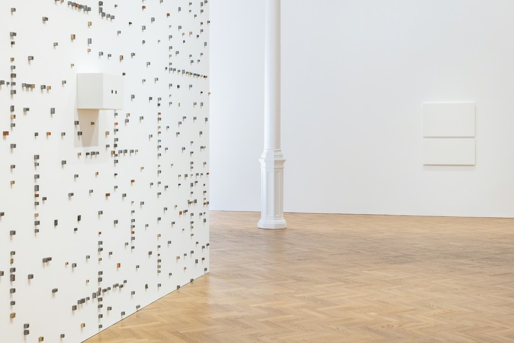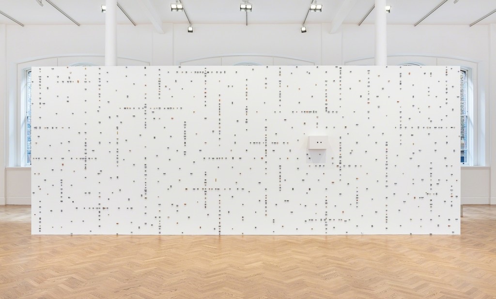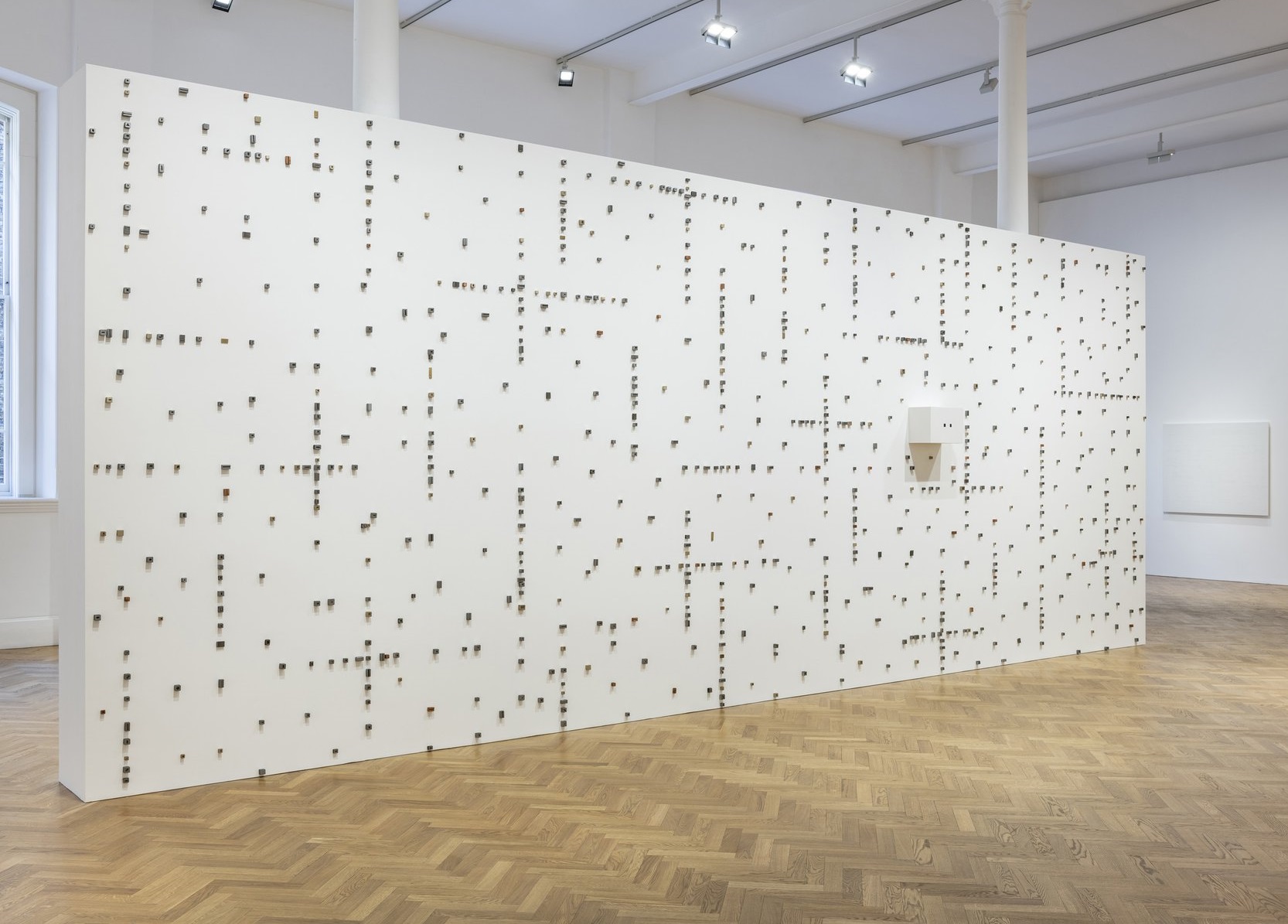 Arranged in a low-relief grid pattern, the iron, copper and brass tools used conventionally by goldsmiths are said by Pace Gallery to allude “postwar abstraction where geometric structures were often used to facilitate non-hierarchical methods of organisation”.