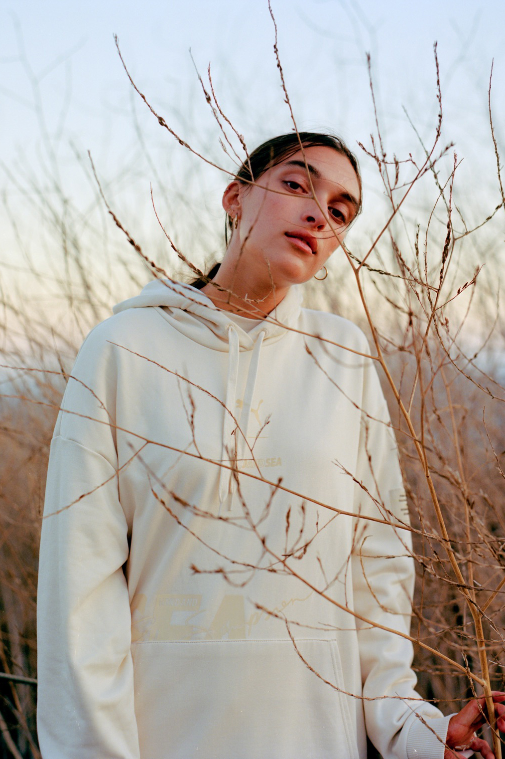 The creamy white pullover hoodie, relaxed T-shirt, long-sleeved top, and boxy shorts all feature PUMA and WIND AND SEA co-branding. One includes PUMA’s insignia above “WIND AND SEA” verbiage, whilst the other spotlights large “WIND AND SEA” branding with PUMA’s “Ralph Sampson” scribbled across in cursive. Each co-branding is printed in special reflective ink, that follows in Kumagai’s signature design ethos.