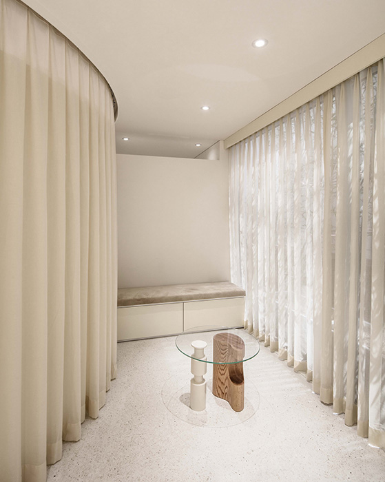 The large two-storey building designed by South-Korean design studio Labotory features a minimalist, airy and chic space that is open and brightly lighted.