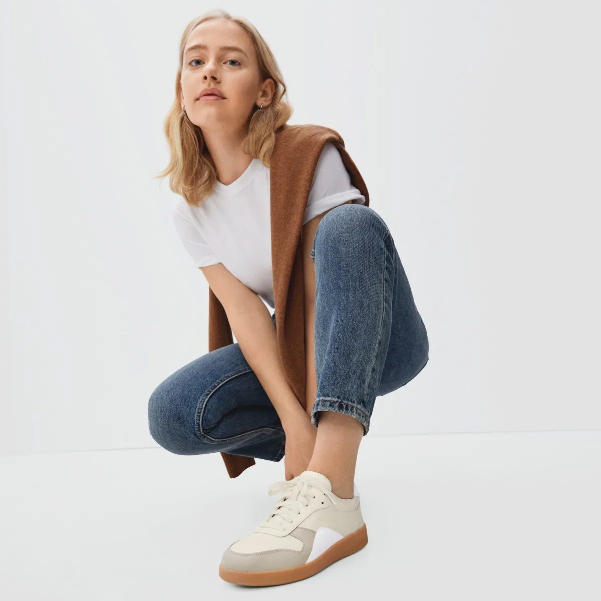 According to Everlane, roughly 30% of each hide is unusable in conventional virgin leather footwear production. That’s why Everlane chose to use keep the waste material out of landfills and utilize it to create low-impact sneakers.