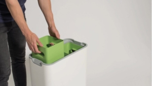 Inside, there are two 20 L internal containers that store the food waste during the fermentation cycle and the containers are covered in a non-stick coating to make emptying and cleaning a breeze. The liquid fertilizer is housed in a separate watering can that can also be removed when it comes time to water some plants.