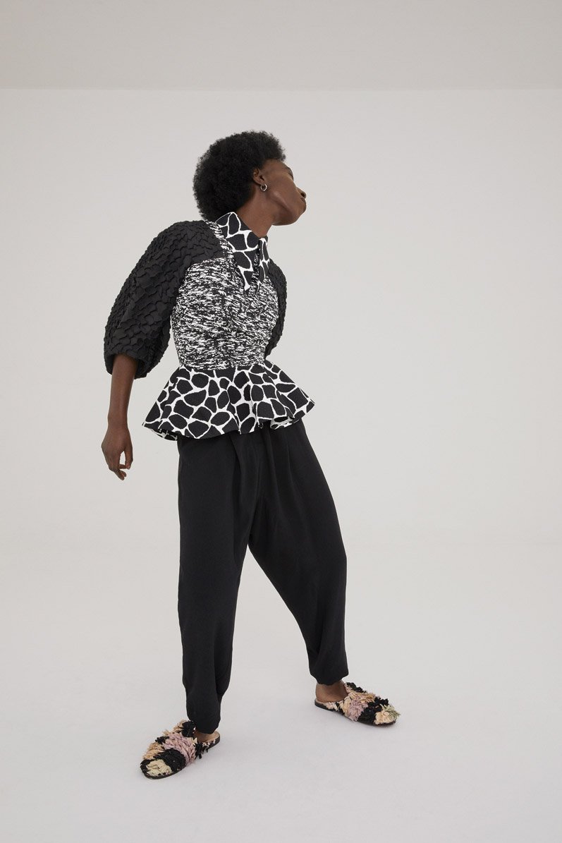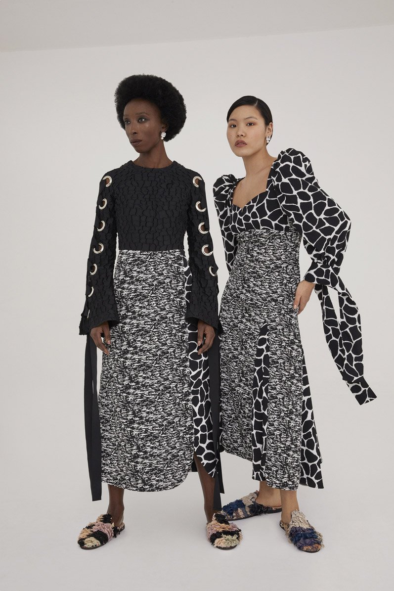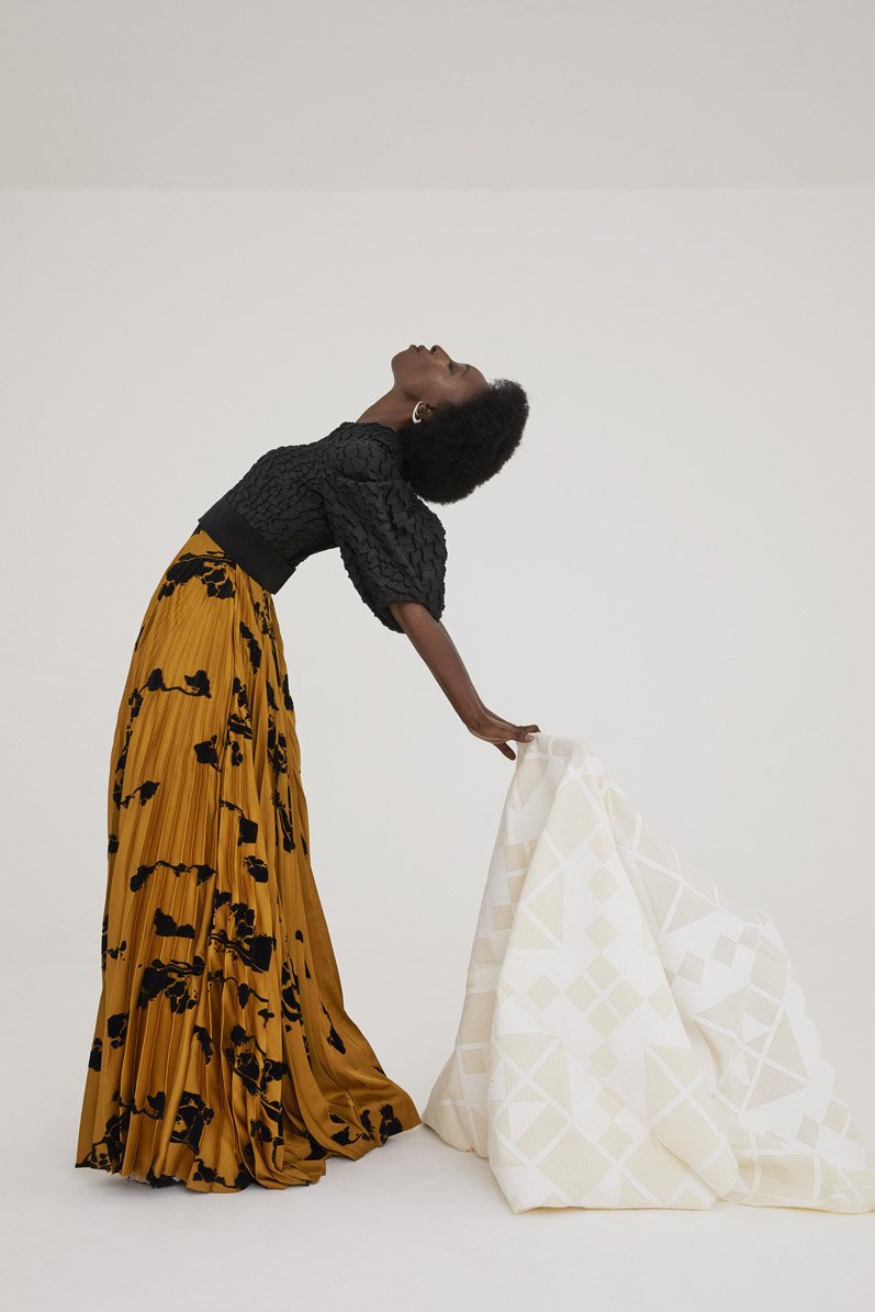 For its 2022 Global Womanhood Collection, the London-based brand chose to create the line exclusively out of deadstock and imperfect materials. For example, some of the fabric was sourced from Teatum Jones’ own archival stock, while others were “imperfect and forgotten” Liberty Fabrics and even damaged tailoring fabrics collected from British woollen mills.