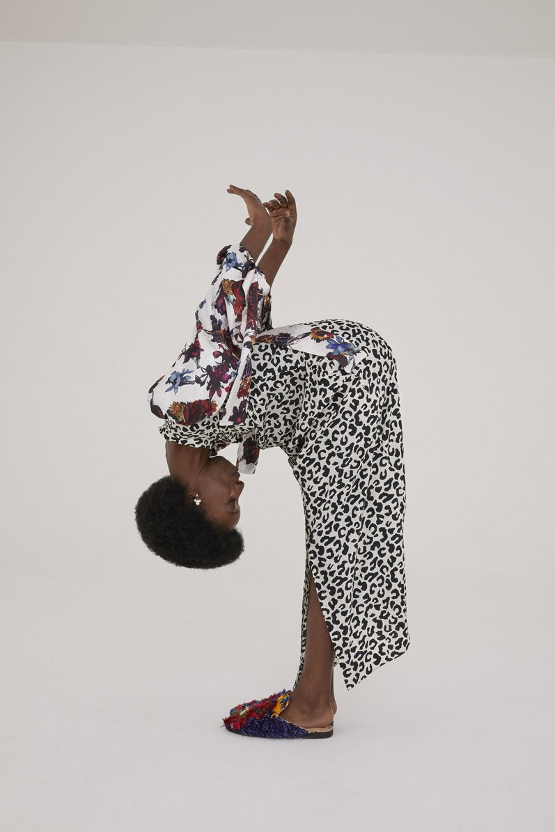 Working with Liberty Fabrics, the UK label selected materials from their archives, which according to the brand had been sitting in their Italian warehouses since the start of the pandemic. In the end, Teatum Jones selected 12 deadstock fabrics, including three iconic Liberty prints: Ceremony, Sussex, and Standen.