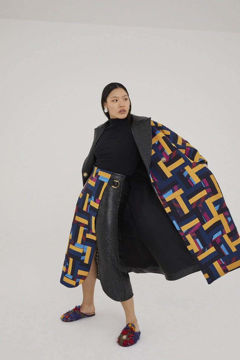 The result was a collection of bold and vibrant designs in hues of fuchsia, cobalt blue, deep purple, scarlet red, and metallics. Teatum Jones’ Re-Love line largely consists of midi dresses, maxi skirts, tailored pantsuits, and statement outerwear, each adorned with bright colours and funky patterns.