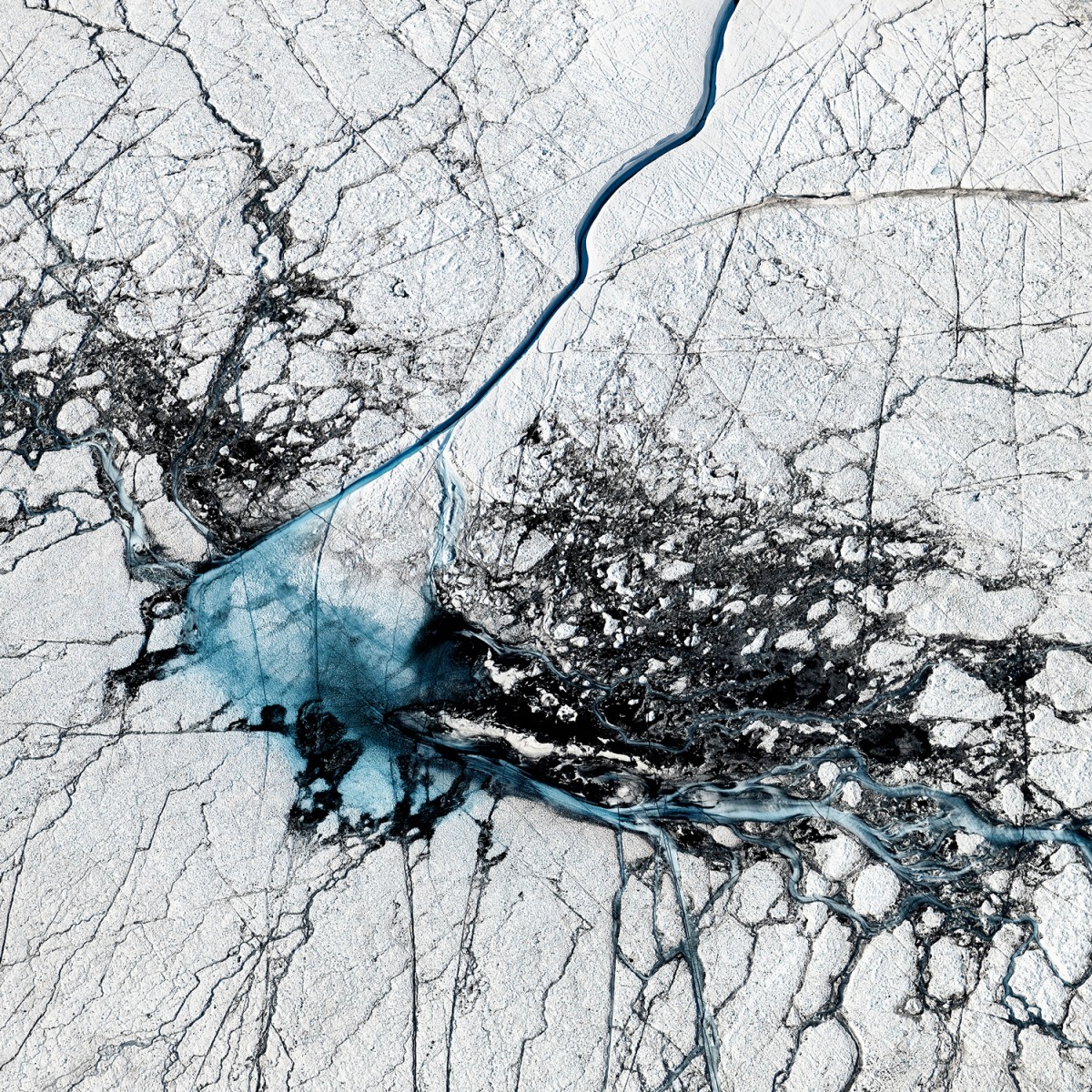 From the growing amount of blue rivers and lakes to the cracking of ice, the aim of Lieber with THAW is to present visuals for immense numbers and statistics that are difficult to comprehend.