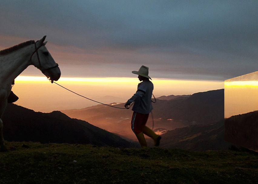 “As an excuse, the intervention forces us to delve into the vision of a lost self; that beats on the other side, in the reflection,” explained Natura Futura Arquitectura. “Prismatic, light, suspended partly over the abyss, The invisible Portal plays to return us to the earth, to the initial.