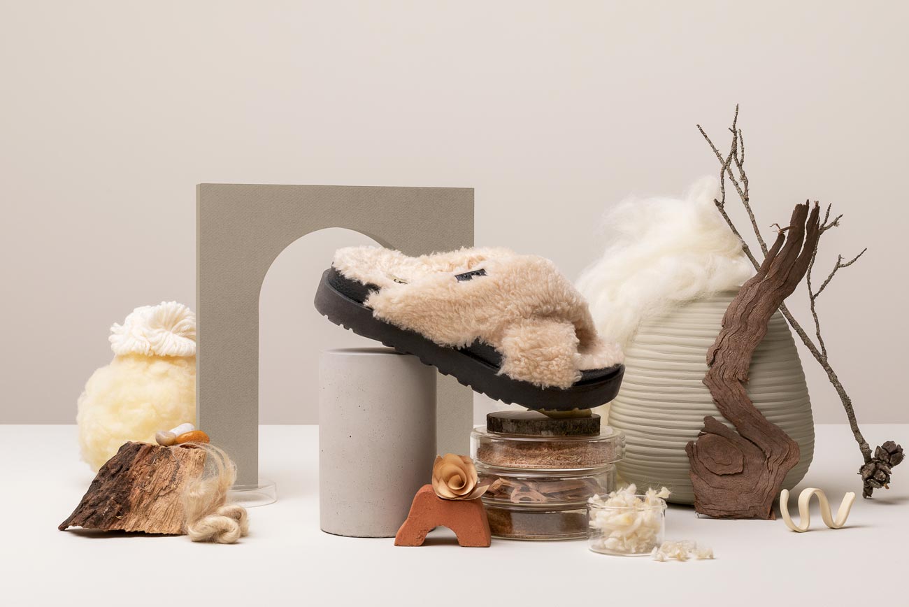 To bring the Icon-Impact collection to life, UGG developed an innovative method of creating new materials out of wool waste, producing two new materials in total. The materials, UGGPlush and UGGCycle, are each made from reclaimed wool and thus require far less water and energy consumption (not to mention carbon emissions) than virgin wool. In fact, UGG says that their new repurposed wool resulted in saving 132 million megajoules of energy, 11.9 billion gallons of water, and 134 million pounds of carbon dioxide. This is a major stride for the brand, owing to how integral virgin wool had formerly been to their supply chain.