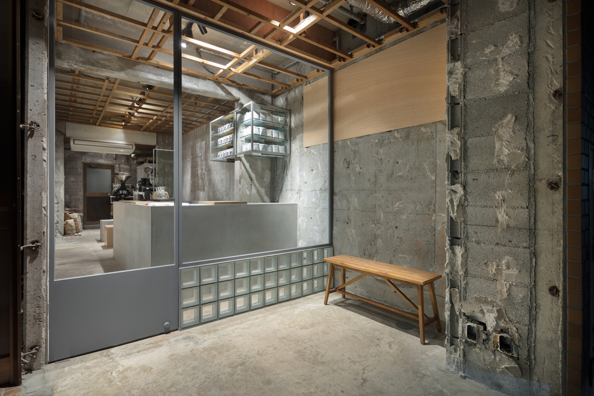 Designed by Yusuke Seki, the cafe’s glass façade is set back to create a traditional element of a Japanese house called engawa where guests can sit and enjoy their drinks while outdoors.
