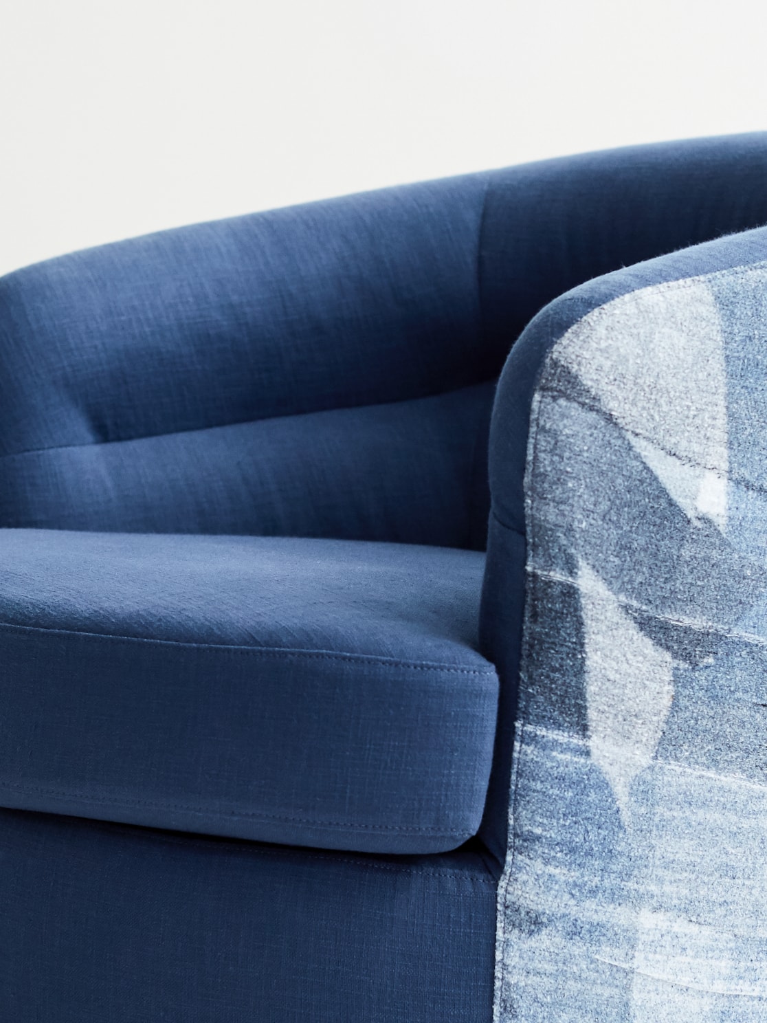 The EILEEN FISHER x West Elm collection, which includes a range of pillows and a swivel chair, is noteworthy because each piece is made of upcycled denim.