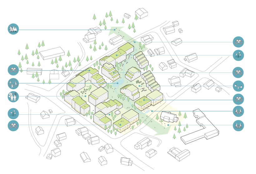 Ankerhagen isn’t merely about housing; it’s about nurturing a sense of community and belonging. The proposal offers a diverse range of housing types and sizes, from student apartments to care homes and townhouses. This diversity is intentionally designed to encourage interaction among residents of varying backgrounds and life stages.
